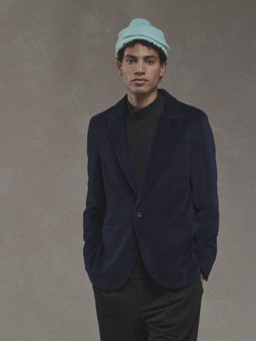 - The model is 187 cm tall and wears a size 50.